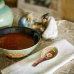 Ett recept från en holländsk studentkokbok - därför hittar du denna smakrika soppa i listan på holländska recept. Och, jag misstänker att det är en västerländsk tolkning av kinesisk tomatsoppa. Som så ofta med kinesisk mat som serveras i restauranger i vår del av världen.